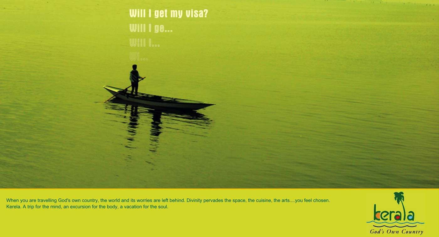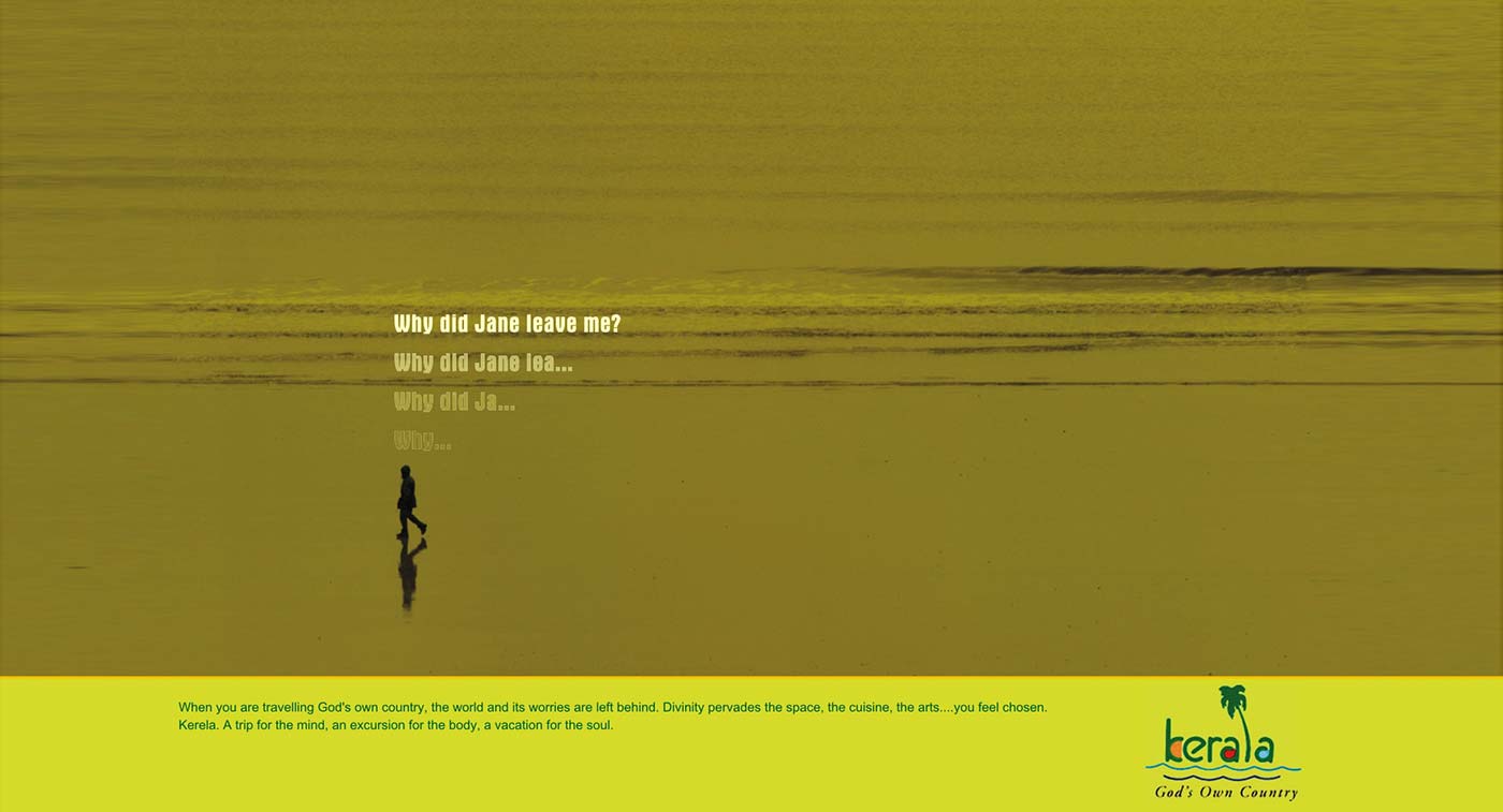 Coming to God's own country is a divine experience. So divine that you will see your little worries fade away. The campaign explores the above thought in a well art-directed canvass.